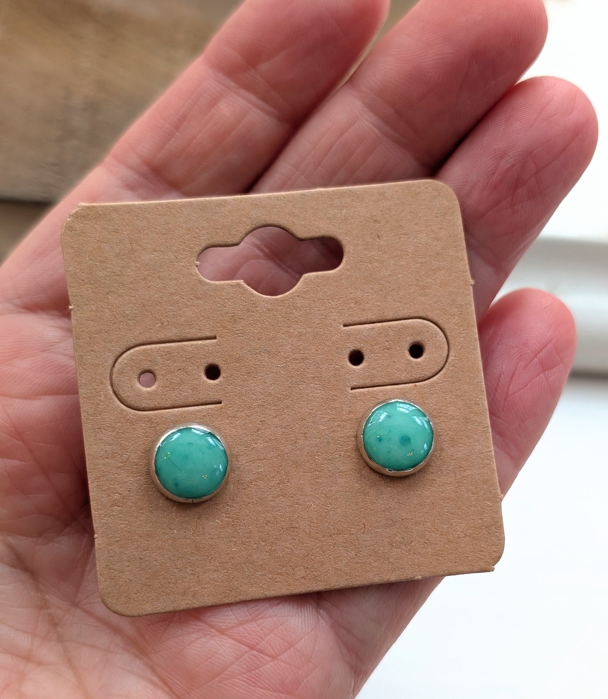 Super sweet little stud earrings in a fresh green color.